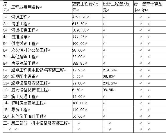 机电设备及安装工程=涵闸工程机电设备与安装工程+涵闸配电设备=12.95+219.60+96.60+5.55=334.70(万元)