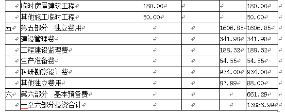 一至五部分设备工程费合计=219.60+96.60+204.60+ 98.85=619.65(万元)