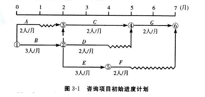 开始工作后不久,由于乙咨询单位业务繁忙,每月最多能为该项目安排5名咨询人员平行工作,乙咨询单位及时对初始进度计划进行了调整。