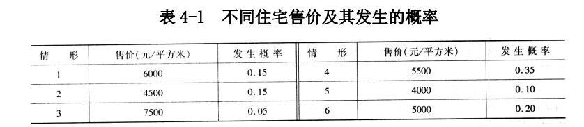 X房地产企业委托一家咨询公司对本项目的市场、方案、效益和风险等进行分析。丙咨询工程师通过敏感性分析得知项目效益对住宅价格很敏感,当住宅平均售价为5200元/㎡时,项目的内部收益率等于开发商期望的最低回报率(12%)。丙咨询工程师分析了不同住宅售价发生的概率,如表4-1所示: