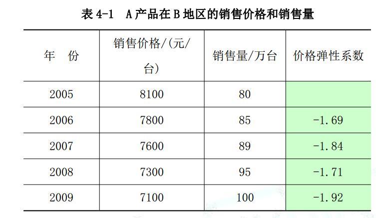 【问题】如果B地区2010年A产品的销售价格下降到7000元/台,用价格弹性系数法预测2010年A产品在B地区的销售量