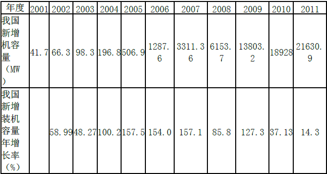 (2013真题)甲咨询公司受A企业委托,为其风电项目提供投资咨询服务。甲咨询公司搜集了2001~2011年我国风电装机容量