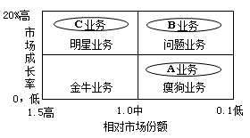 2.根据表2-2计算该企业三种业务相对市场份额并画出波士顿矩阵图。