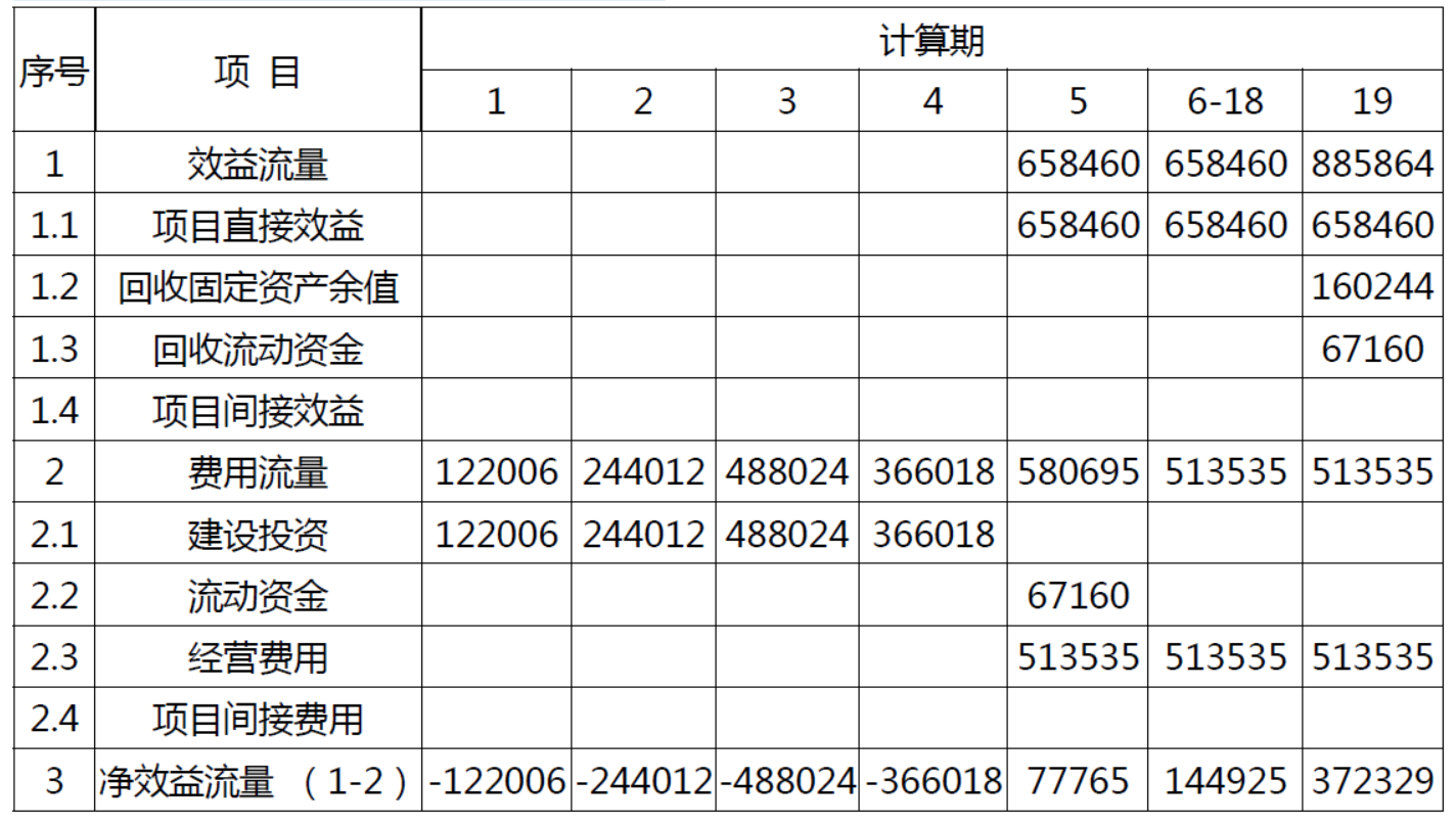 项目投资经济费用效益流量表单位:万元