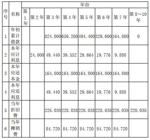项目建设投资还本付息及固定产折旧、摊销费用表(单位:万元)