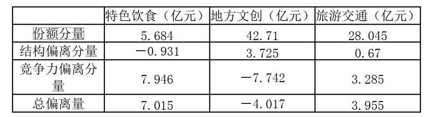 因此,通过“偏离-份额”分析法可得出结论:该市地方文创产业具有很大的发展空间,应重点发展,使其发展的脚步跟上其他旅游产业。