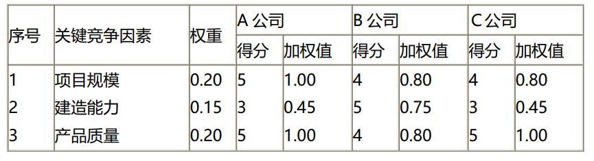 3.75分,因此可以看出,A公司的竞争实力要明显强于B、C公司。