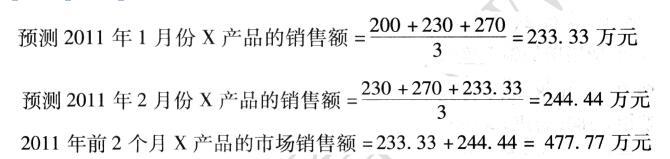 【问题】2.用简单移动平均法预测2011年前2个月X产品的市场销售额(n=3)。