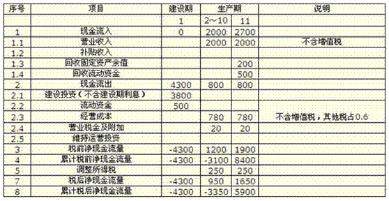 除了电价(现电网供电价格为0.6元/(kWh))外,项目投入物和产出物的价格及工资等都是市场价格,并与国际市场价格很相近。其中,土地是征用耕地100亩,按基年(距开工年2年)测算的每亩农作物国民经济净效益为1347元,以后每年增长率预计为1%,土地征用发生的房屋迁建补偿、附属设施补偿等新增资源消耗按国民经济费用测算方法确定为100万元。项目所造成的环境污染造成的实际损失300万元/年。