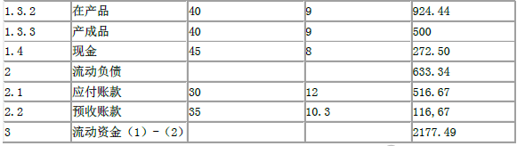 流动资金=流动资产-流动负债=2810.83-633.34=2177.49(万元)