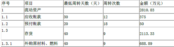 表 流动资金估算表