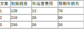 国家提出要建设一个针对某一特定灾害的防灾预警系统,用来减少灾害损失。现在有3个互斥建设方案,收益期均为20年。根据统计资料分析及专家论证,如果不建造该预警系统,预期未来每年灾害经济损失为120亿元;若建造该防灾预警系统,除初始投资外,每年还需要支付系统维护费用,但可降低每年预期灾害损失。各方案的初始投资、每年运营维护费用及预期年损失等资料见下表。设定基准收益率为8%。
