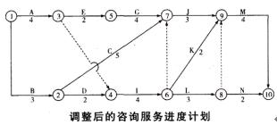 由于A、I、J工作均为现场考察,项目组织安排甲专业咨询工程师按A—I—J顺序通过实地考察完成,并相应调整了咨询服务进度计划。