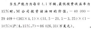 2.当生产能力为每日4.1万桶、最低投资收益率为15%时,分析判断M公司投资该油田的价值。