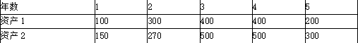 业务一:评估A公司两项资产打包进行资产证券化出售时的公允价值,各资产预期现金流见下表,投资收益率y=8%,