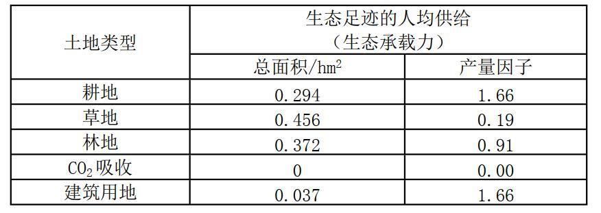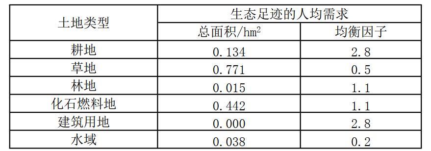 由于该项目能耗较高,因此该企业应政府要求聘请咨询公司进行了区域资源环境承载力分析,该市生态足迹的人均数据见表2-1所示,生态承载力人均数据见表2-2所示。