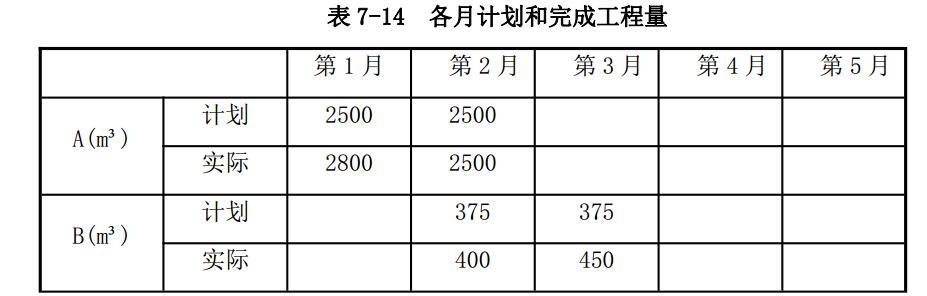 (7)竣工结算时,发包人按总造价的3%预留质量保证金。各月计划和实际完成工程量如表7-14所示。
