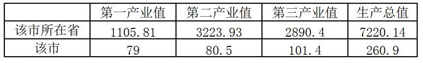 (3)该市近5年第一、二、三产业产值与全省同期数据如下表3-1所示: