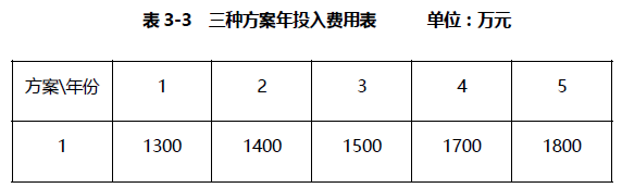方案每年投入的费用额见表3-3。设定折现率为3%。