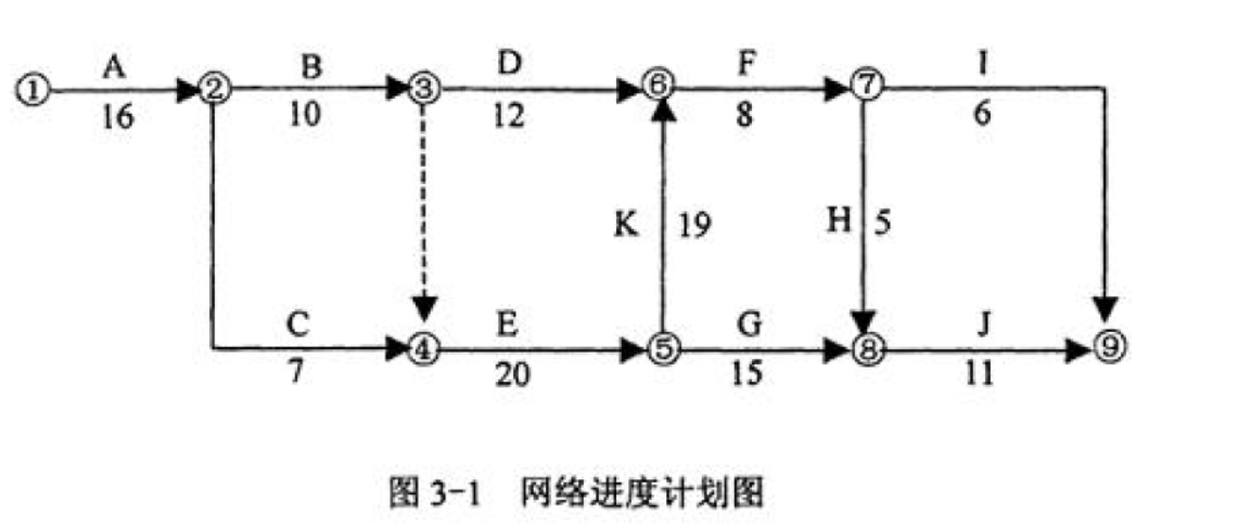 某工程项目合同上期为89天,网络进度计划如图3-1所示。其中,B、E、K、I四项工作均为土方工程,需安排同艺台士方施工机械先后顺序施上,土方工程量分别估算为1100m3、2300m3、1600m3和800m3,土方综合单价为18元/m3。合同中规定,土方工程量减少不超出原估算工程量的20%时,按原约定价格计价;减少量超出20%时,全部土方工程量按19元/m3计价。