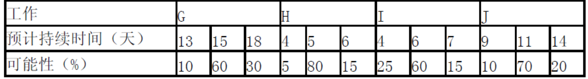 表3-1 G、H、I、J工作持续时间估算表