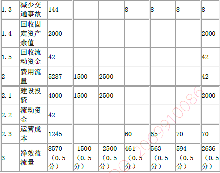 A市拟新建一条高速公路,委托B咨询公司承担该项目可行性研究工作。B咨询公司通过现场访谈调查和专家调查,获得了大量的项目基础信息,编制了项目经济费用效益相关数据表(见下表),项目计算期20年,社会折现率为10%