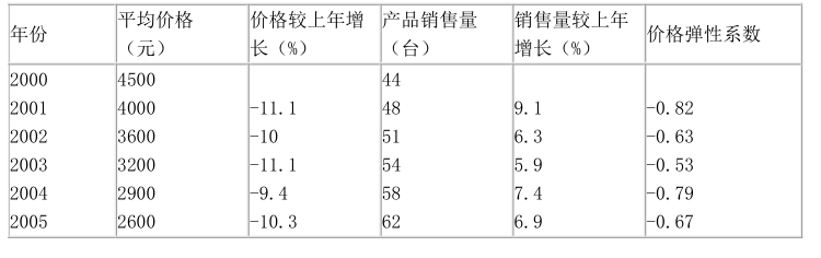 、首先计算空调各年的价格弹性系数,见下表。