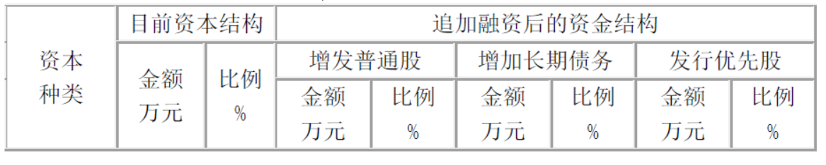 公司目前和追加融资后的资金结构见下表: