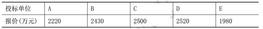 事件3:开标时发现,A单位还有一个相对较低的报价,但未声明哪份报价有效。五家投标单位的投标报价数据见表5-1。