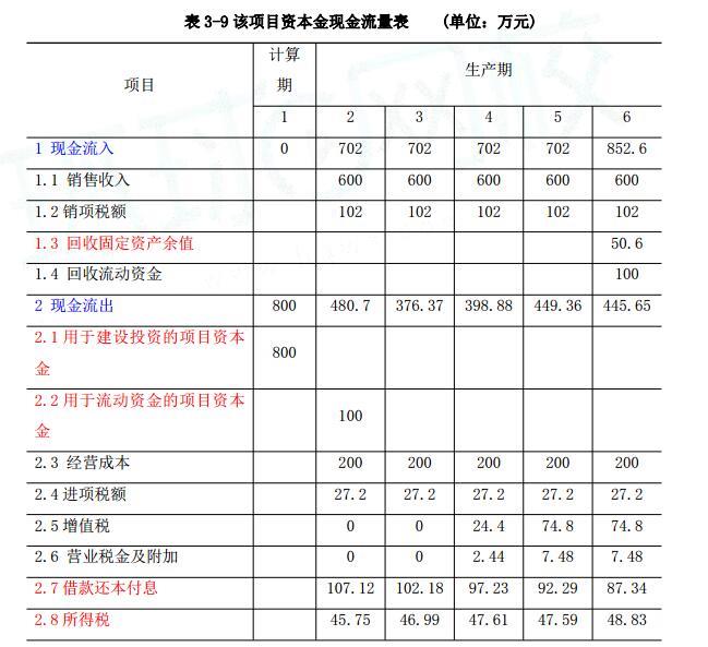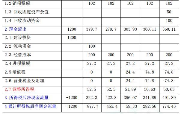 (2)现金流入中应增加销项税额,现金流出中应增加进项税额和增值税。理由:考虑可抵扣固定资产进项税引起的影响。