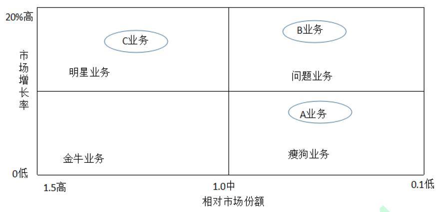(3)咨询公司分析了当前和今后一个时期经济形势、市场环境和竞争态势,认为:未来该企业A、业务增长率将会降低,B、业务和C、业务市场需求将会有所增长,且企业市场竞争难度加大。