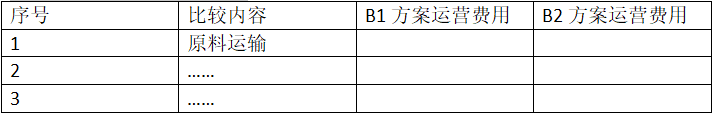 、根据表1列出B项目厂址比选的相关运营费用的比较内容(用文字描述,不少于五项)。(5分)