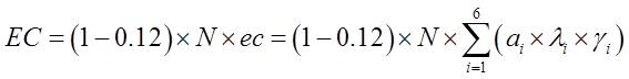 B市的人均生态承载力=(1-0.12)×[325×2.39×1.86+159×0.51×0.12+508×1.25×1.50+125×0.41×0.20+1×239×5.8]=2139.37(m2/人)。