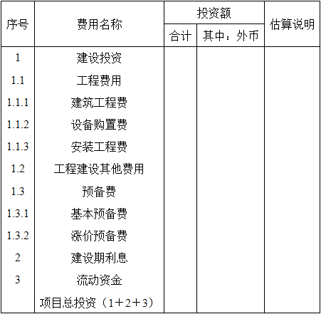 表4-2 项目总投资估算表