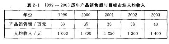 某产品过去5年的销售额与目标市场人均收人的数据见表2-1,预计2006年该产品的目标市场人均收入为1800元。