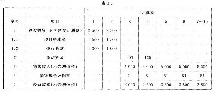 (3)建设项目的资金投入、收入、成本相关数据见表3-1(流动资金全部由项目资本金解决)。