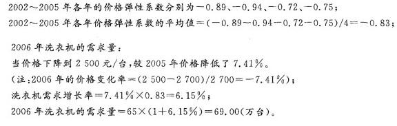 如果当地2006年洗衣机的平均价格下降到2500元/台,用价格弹性系数法预测当地2006年洗衣机的销售量。