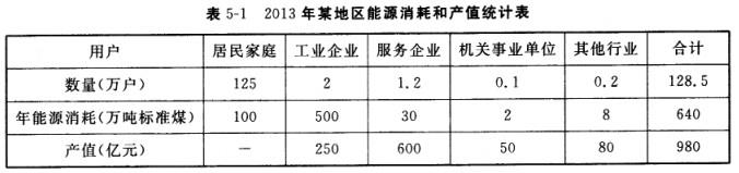 某地区政府部门委托某工程咨询公司对本地区的能源利用状况进行市场调查,调查统计的该地区2013年能源消耗和产值情况见表5-1。
