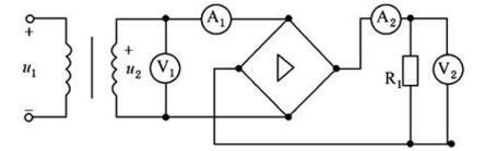 电路如图所示,二极管为理想元件,已知u2=100√2sin314t(V),RL=90Ω(设电流表的内阻视为零,电压表的内阻视为无穷大)。交流电压表(V1),直流电流表(A2)和直流电压表(V2)的读数分别是( )。 A.100V,1 A,45V B.100V,1 A,90V