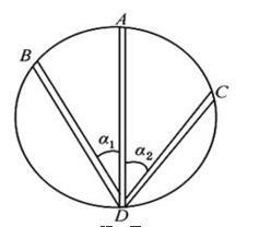 如图,在铅直面内有一圆板刻有三道光滑细槽A D、B D、C D,AD槽沿铅直方向,长为圆板直径,现有三个质量相等的小球在重力作用下自静止开始同时自 A、 B、C三点沿槽运动,下列四种情形中正确的是( )。
