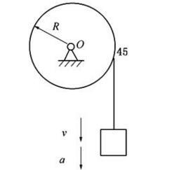 如图半径为R的滑轮上绕一绳子,绳与轮间无相对滑动。绳子一端挂一物块,在图示位置物块有速度和加速度。M点为滑轮上与铅垂绳段的相切点,则在此瞬时M点加速度的大小为( )。