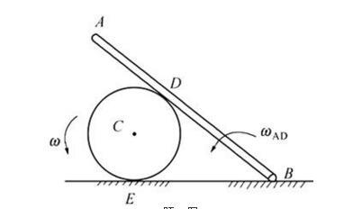 如图,半径为R的圆轮以匀角速度作纯滚动,带动AB杆绕B作定轴转动,D是轮与杆的接触点,如图所示。若取轮心C为动点,杆BA为动坐标系,则动点的牵连速度为( )。