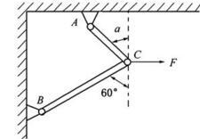 如图所示结构在C点作用一水平力 F,其大小等于300kN。设AC杆与铅直线的夹角为α,该杆最多只能承受150kN。若要结构不致破坏,角度α的大小应为( )。