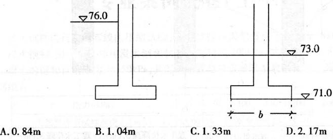 如图所示,某砖混住宅条形基础,地层为粘粒含量小于10%的均质粉土,重度19kN/m3,施工前用深层载荷试验实测基底标高处的地基承载力特征值为350kPa,已知上部结构传至基础顶面的竖向力为260kN/m,基础和台阶上土平均重度为20kN/m3,按现行《建筑地基基础设计规范》要求,基础宽度的设计结果接近下列哪个选项?