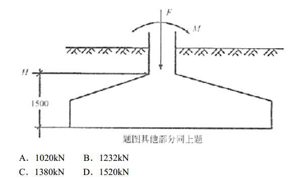 某桩基工程安全等级为二级,其桩型平面布置、剖面和地层分布如图所示,已知轴力F=12000kN,力矩M=1000kN?m,水平力H=600kN,承台和填土的平均重度为20kN/m3,自重荷载分项系数取1.2,桩顶轴向压力最大设计值的计算结果最接近下列哪一选项?()
