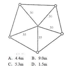 某基坑潜水含水层厚度为20m,含水层渗透系数K=4m/d,平均单井出水量q=500m3/d,井群的引用影响半径Ra=130m,井群布置如图。试按行业标准《建筑基坑支护技术规程》(JGJ20-99)计算该基坑中心点水位降深s最接近下列哪个选项中的值?()