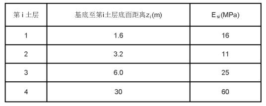 某独立柱基尺寸为4mX4m,基础底面处的附加压力为130kPa,地基承载力特征值fak=180kPa,根据下表所提供的数据,采用分层总和法计算独立柱基的地基最终变形量,变形计算深度为基础底面下6.0m,沉降计算经验系数取φs=0.4,根据以上条件计算得出的地基最终变形量最接近()。