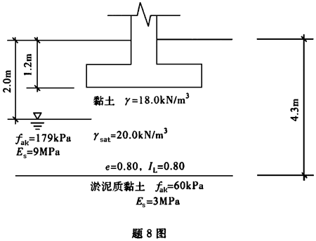 某砌体承重办公楼基础采用墙下钢筋混凝土条形基础,b=1.1m,采用C15混凝土(ft=7.5MPa),底层承重墙厚240mm,作用在±0.000处相应于荷载效应标准组合的竖向轴心荷载Fk=190kN/m。地基情况如图所示。试计算控制截面弯矩M,其值为()kN·m。