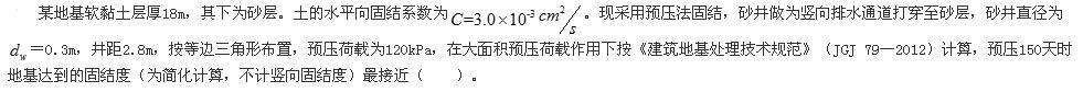 某工程场地为软土地基,采用CFG桩复合地基处理,桩径d=0.5m,按正三角形布桩,桩距s=1.1m,桩长l=15m,单桩承载力发