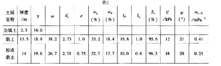 某厂房柱,桩型布置如图6所示,柱底内力设计值分别为:轴向力为N=6000kN,剪力为Q=100kN,弯矩为M=700kN·m。桩身为C30混凝土,轴心抗压强度设计值为fc=14.3N/mm2;采用HRB335钢筋,Fy=300N/mm2。承台为C25混凝土,fc=11.9N/mm2,ft=1.27N/mm2;采用HRB335钢筋,fy=300N/mm2。不考虑承台效应。地基土物理力学性质指标见表2。桩基以粉质黏土层作为桩尖持力层,采用截面尺寸为400mm×400mm的混凝土预制方桩,承台底标高为-2.00m,桩的入土深度为26m,进入粉质黏土层为10m。